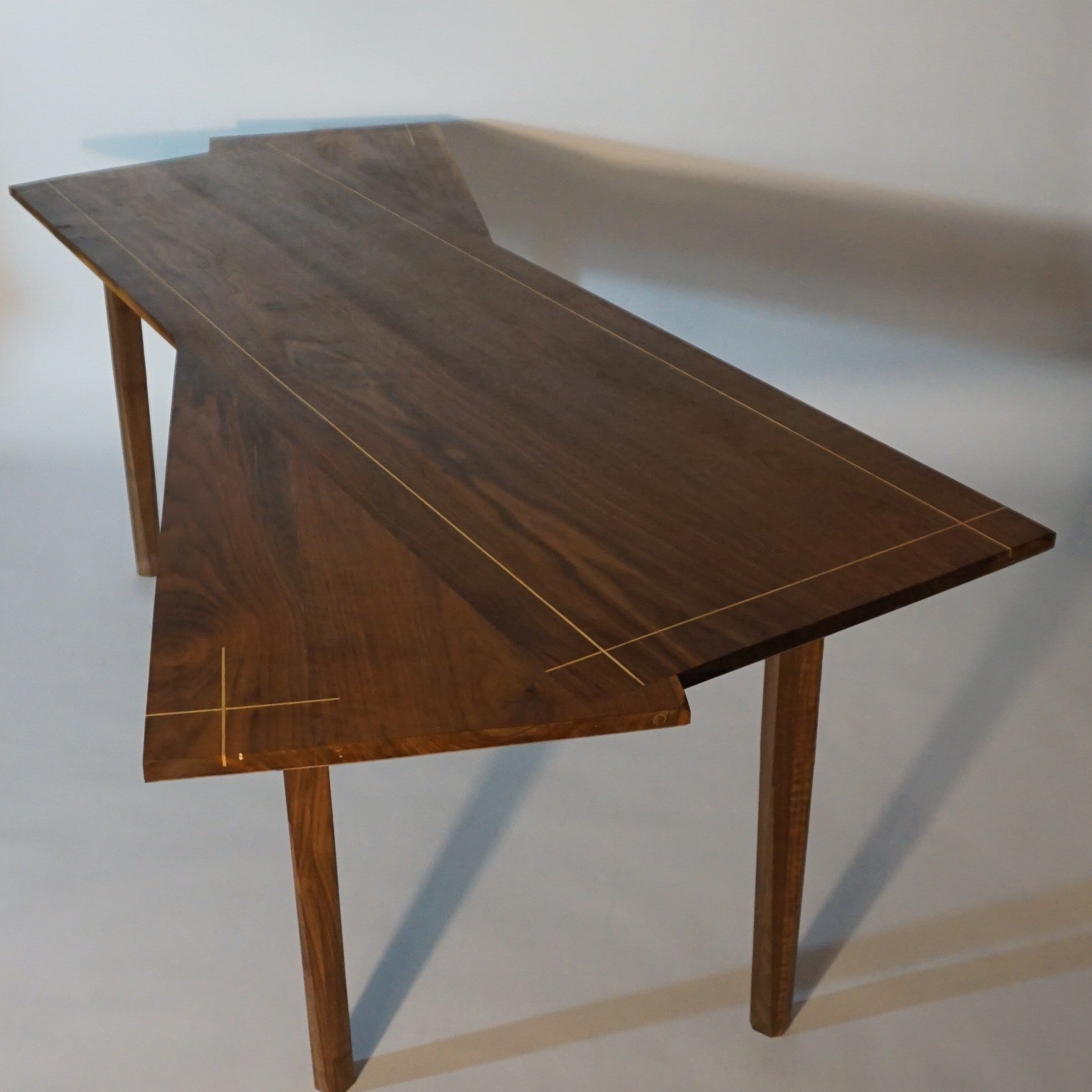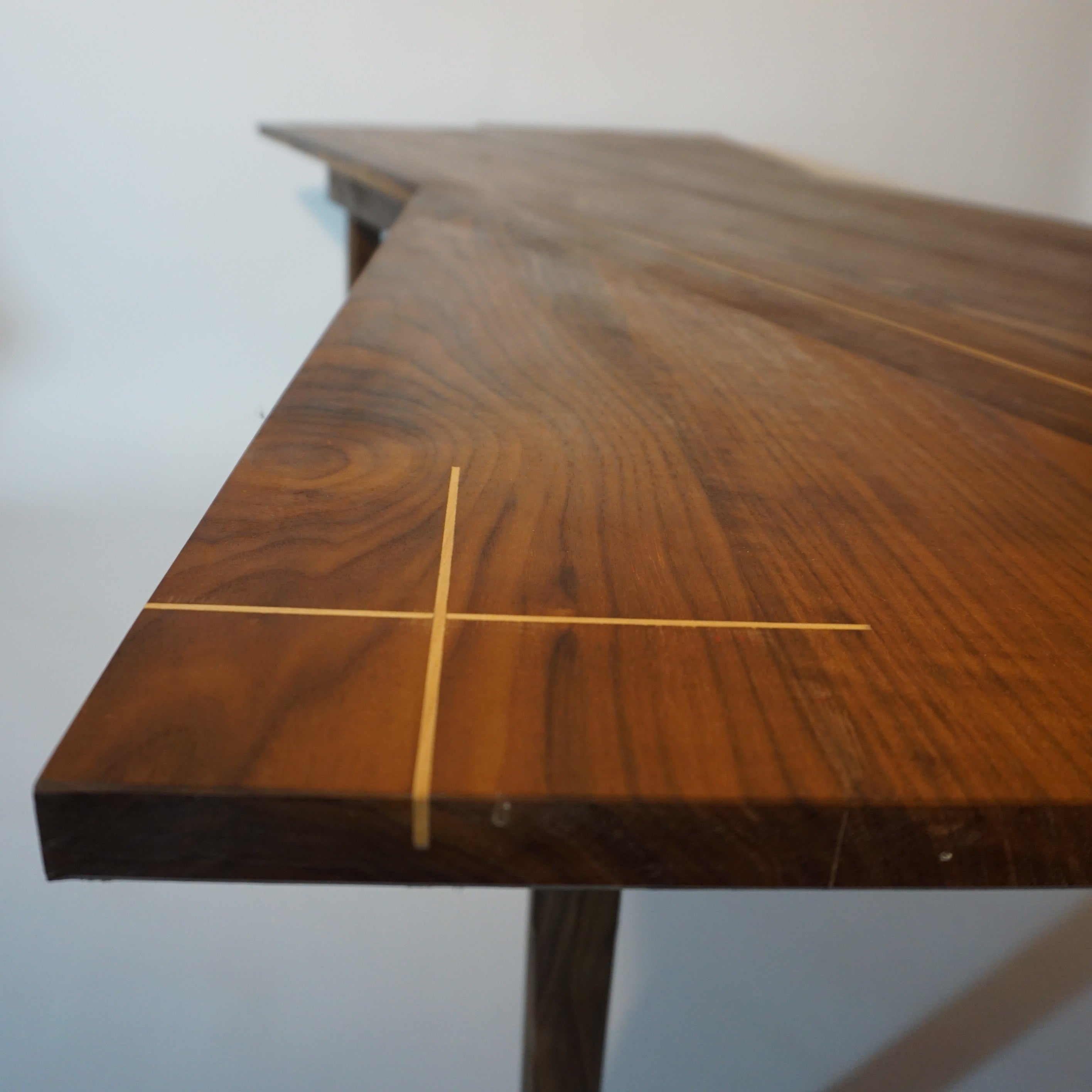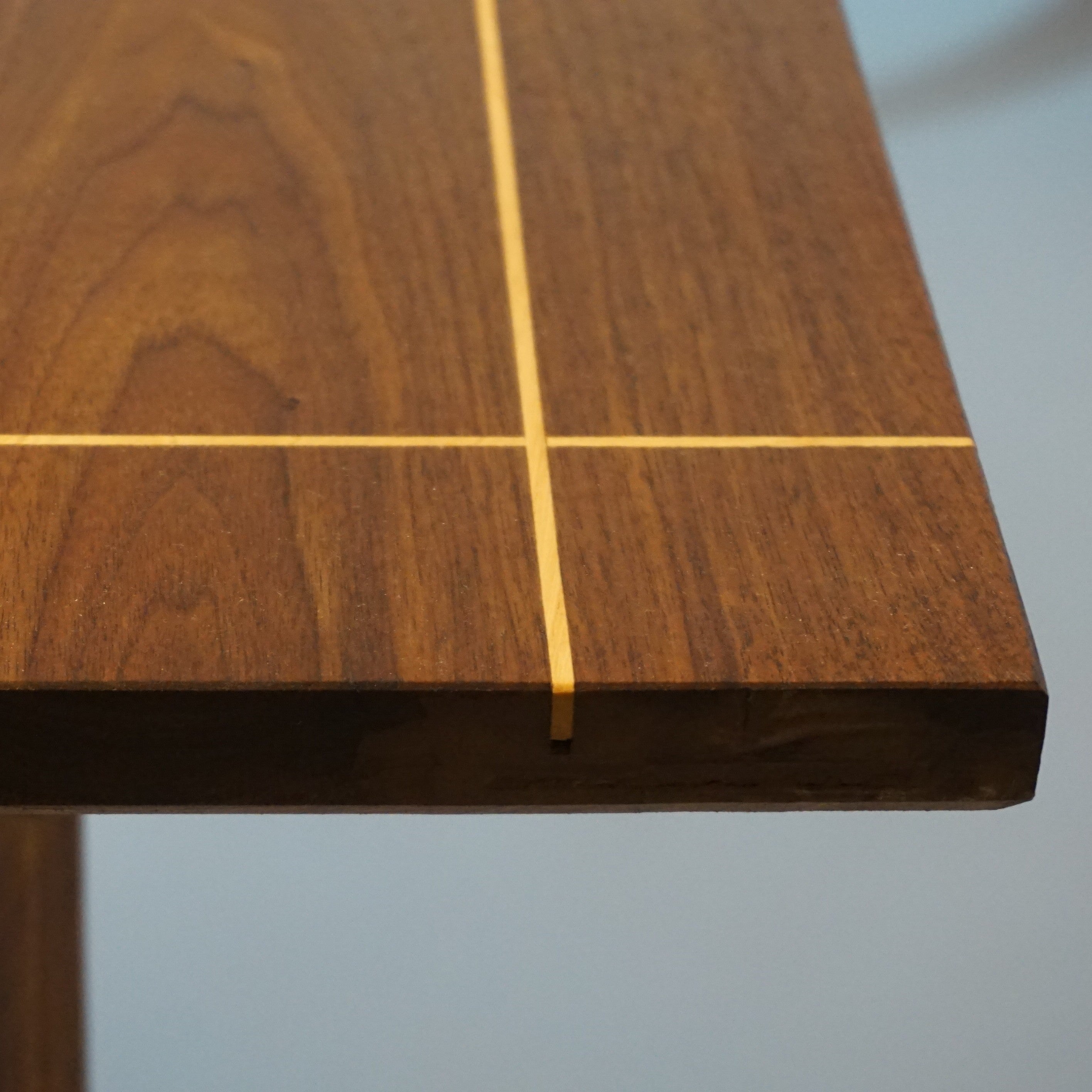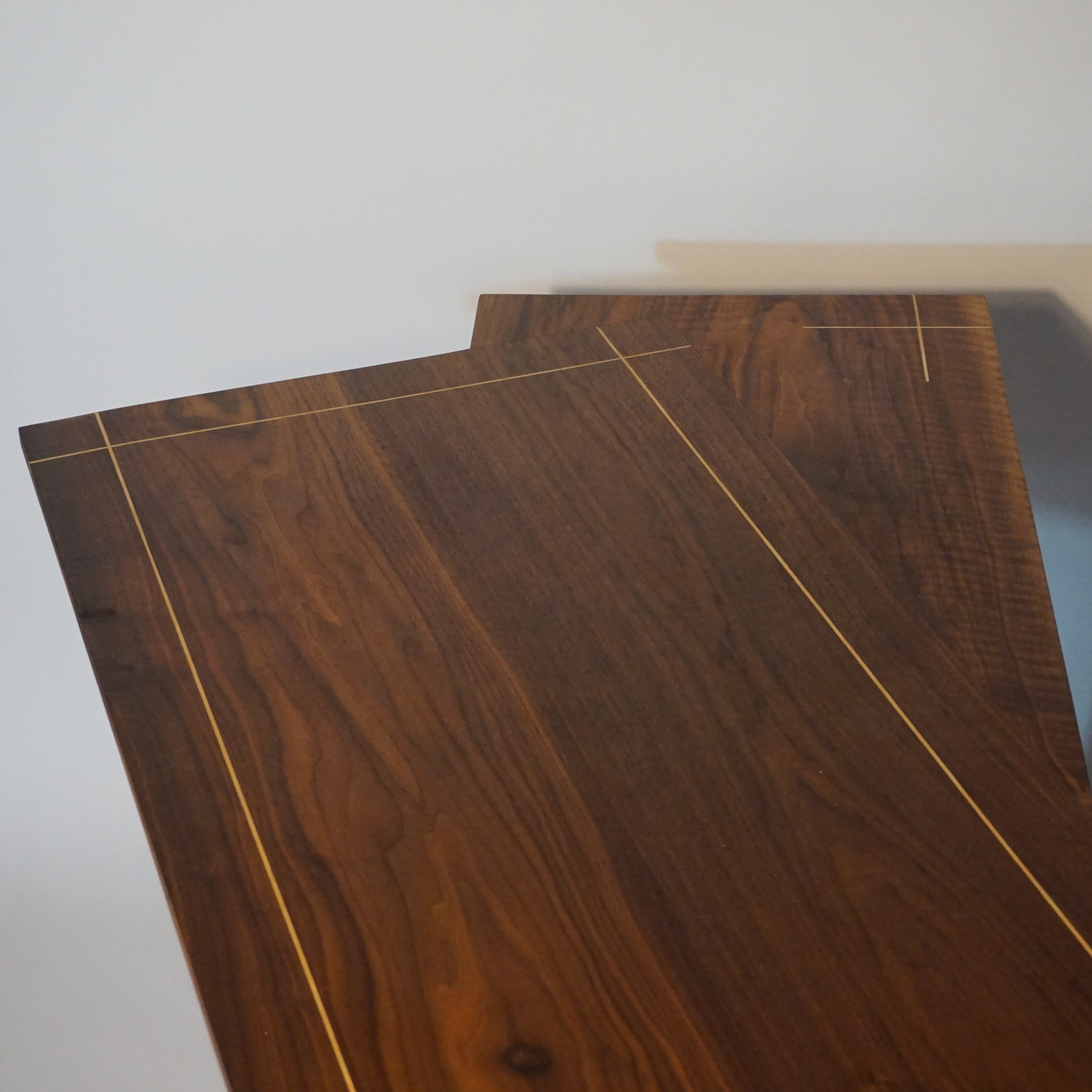 Double plateau croisé pour une esthétique remarquable, avec incrustation de filet de bois d'orme. Petit tiroir secret sous plateau.